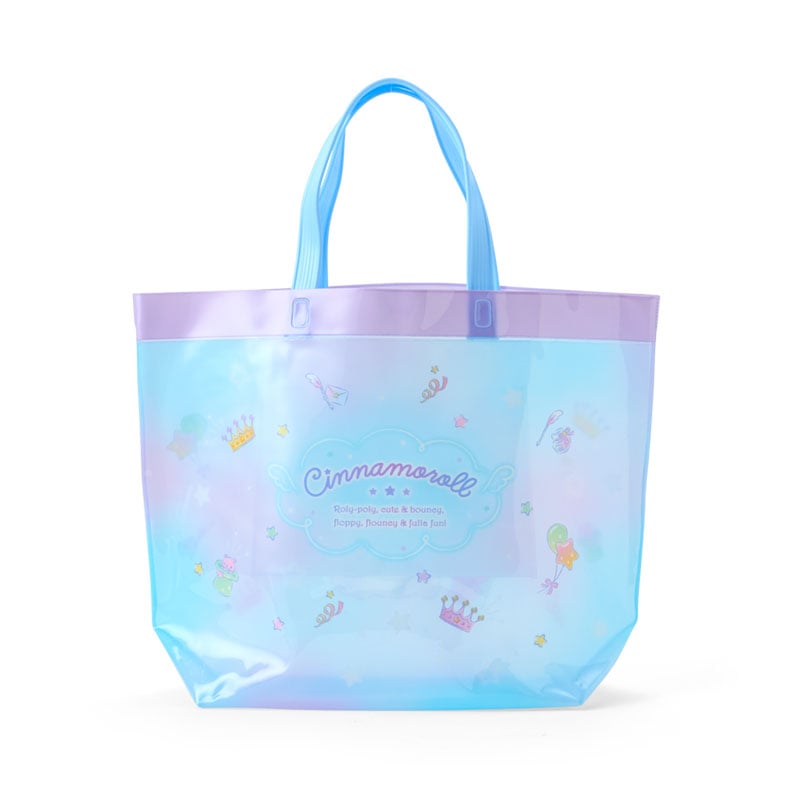 Make a “splash” with this clear tote bag featuring your favorite Sanrio Characters! Its transparent material adds a playful touch, while its vinyl construction makes it safe and easy to clean. Perfect for all your seasonal outings and activities, this bag is both fun and functional - use it as a pool bag or even as a market tote!