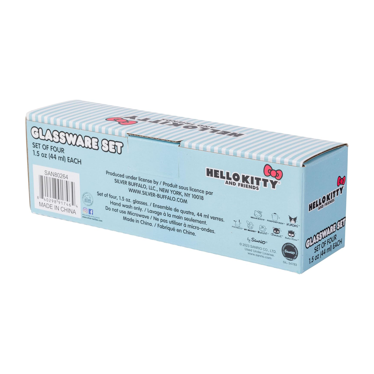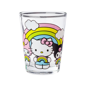 Take a walk in the clouds and enjoy the rainbows with this Hello Kitty and Friends mini glass set. This colorful and collectible 4-piece set makes a supercute juice glass or for those much needed wellness shots too!